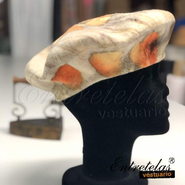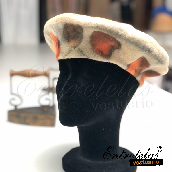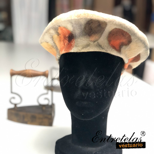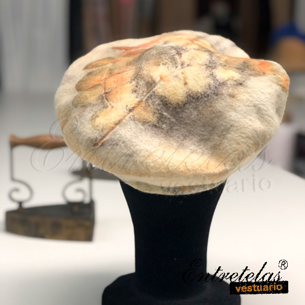Boina de lana 100% artesanal. Fieltrada a mano. Estampación natural Ecoprint