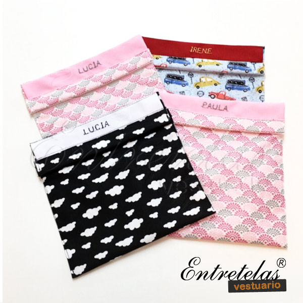 Estas bolsas de bocadillo son ideales para transportar el almuerzo de una manera ecológica y sostenible. Son lavables y reutilizables. Confeccionadas con plástico alimenticio libre de BPA y algodones certificado OekoTex