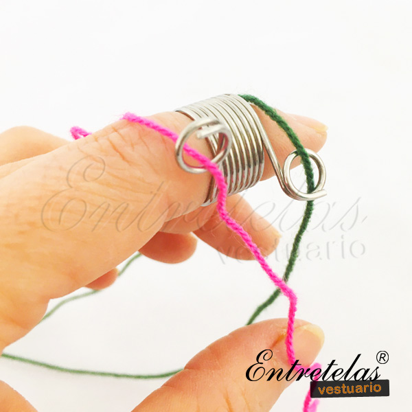 Dedal para labores de tricot en las que necesitemos trabajar con varios hilos a la vez; los mantiene separados y ordenados facilitando así la labor.