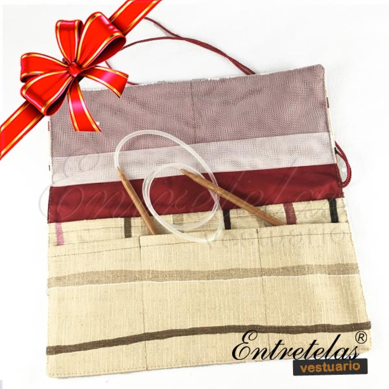 Dos compartimentos traslúcidos para separar los accesorios más pequeños. Espacio para cables y agujas circulares.