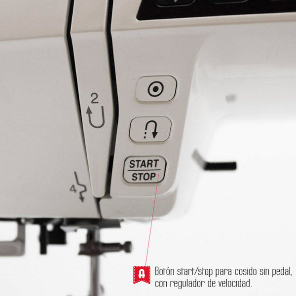 · Botón start/stop para cosido sin pedal, con regulador de velocidad.