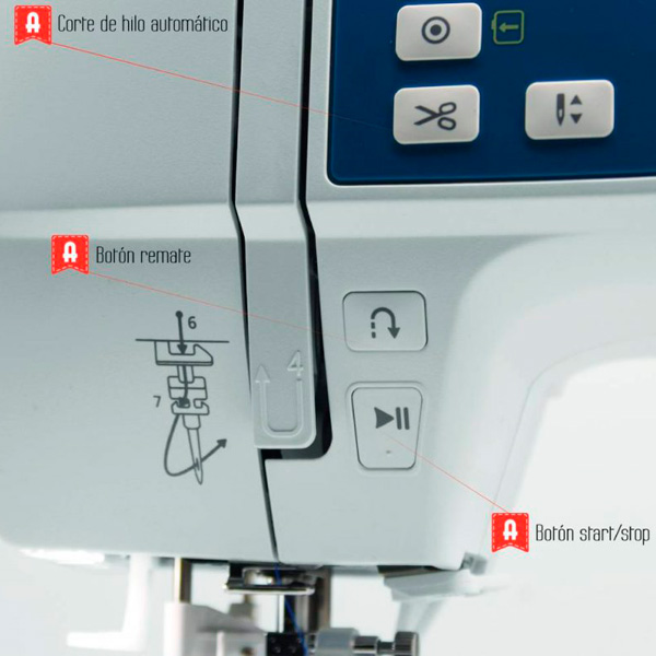 A través de la app “MyPatterns” podrás crear y editar tus bordados directamente desde tu móvil. Además, te da la opción de enviar los diseños desde la app a tu máquina vía WiFi, ya sean diseños propios o diseños externos (descargados de internet) y en la mayoría de formatos existentes. Y si solo quieres coser, tienes delante una máquina completísima con 120 puntadas y 6 tipos de ojales, un amplio espacio de trabajo de hasta 170 mm y muchísimas comodidades como el enhebrador automático, el botón start/stop o el corte de hilo automático.