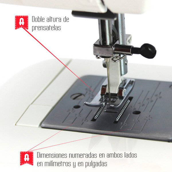Su potente motor y sus prestaciones hacen de ella una máquina ligera, ágil y que cose muy bien.