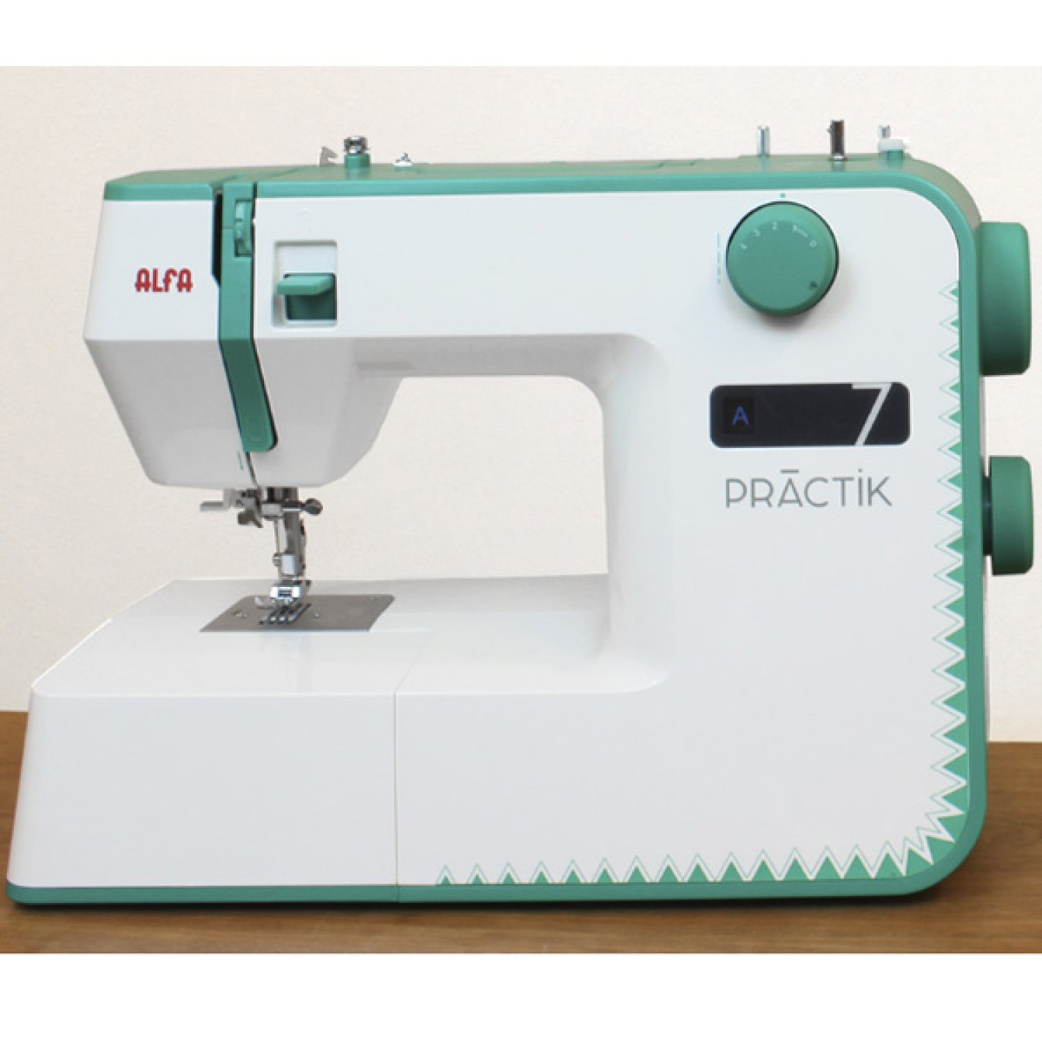 Alfa Practik 7 es una máquina silenciosa, cose con suavidad y no se atasca con tejidos gruesos como los vaqueros, la felpa o el cuero. Entre sus 23 puntadas incluye algunas puntadas elásticas para que te atrevas con tejidos como el punto, la licra o las camisetas. Es una máquina muy cómoda y práctica que viene con enhebrador automático, te permite hacer ojales en un solo paso (¡quedan todos iguales, perfectos!) y ver fácilmente la puntada elegida gracias al visor de puntada LED.