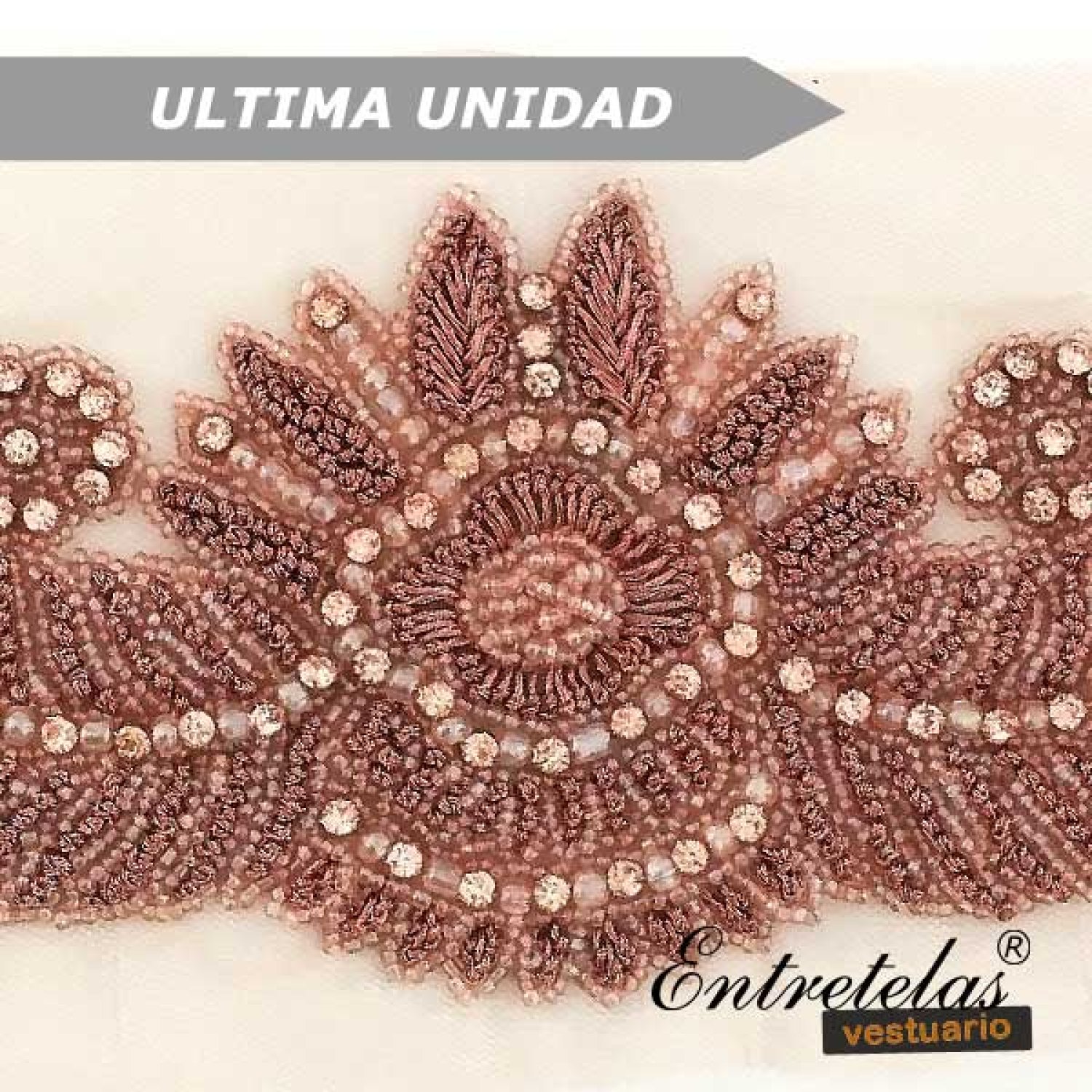 Aplique de pedrería y abalorio en tono rosa palisandro