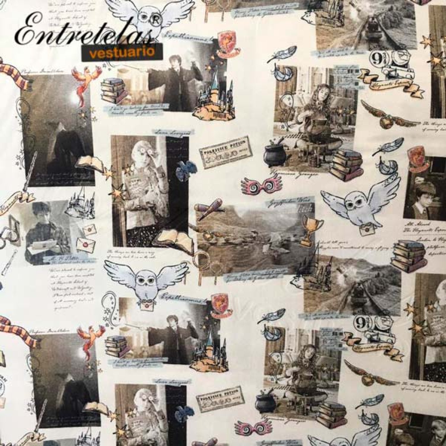 Estampado ideal para los forofos de la saga Harry Potter, tus labores y porta libros confeccionados con este tejido no pasarán desapercibidos