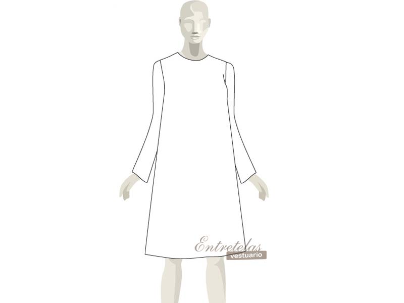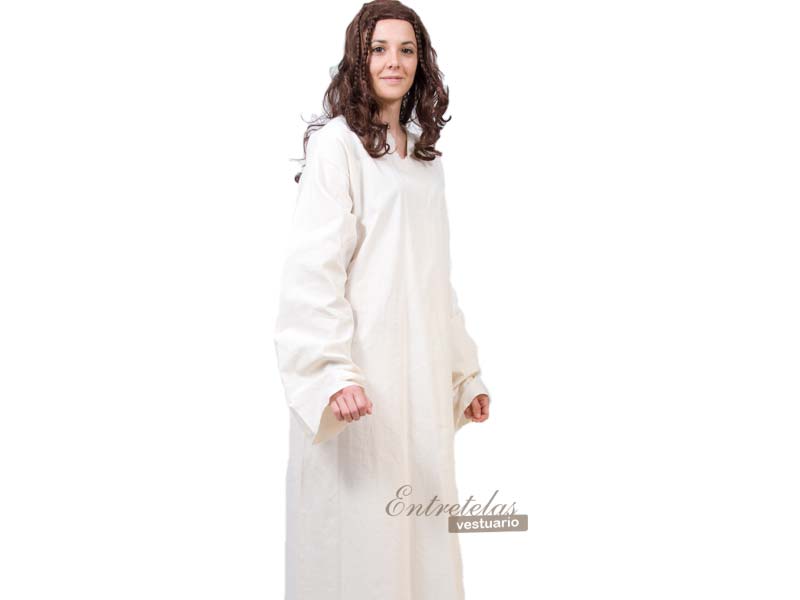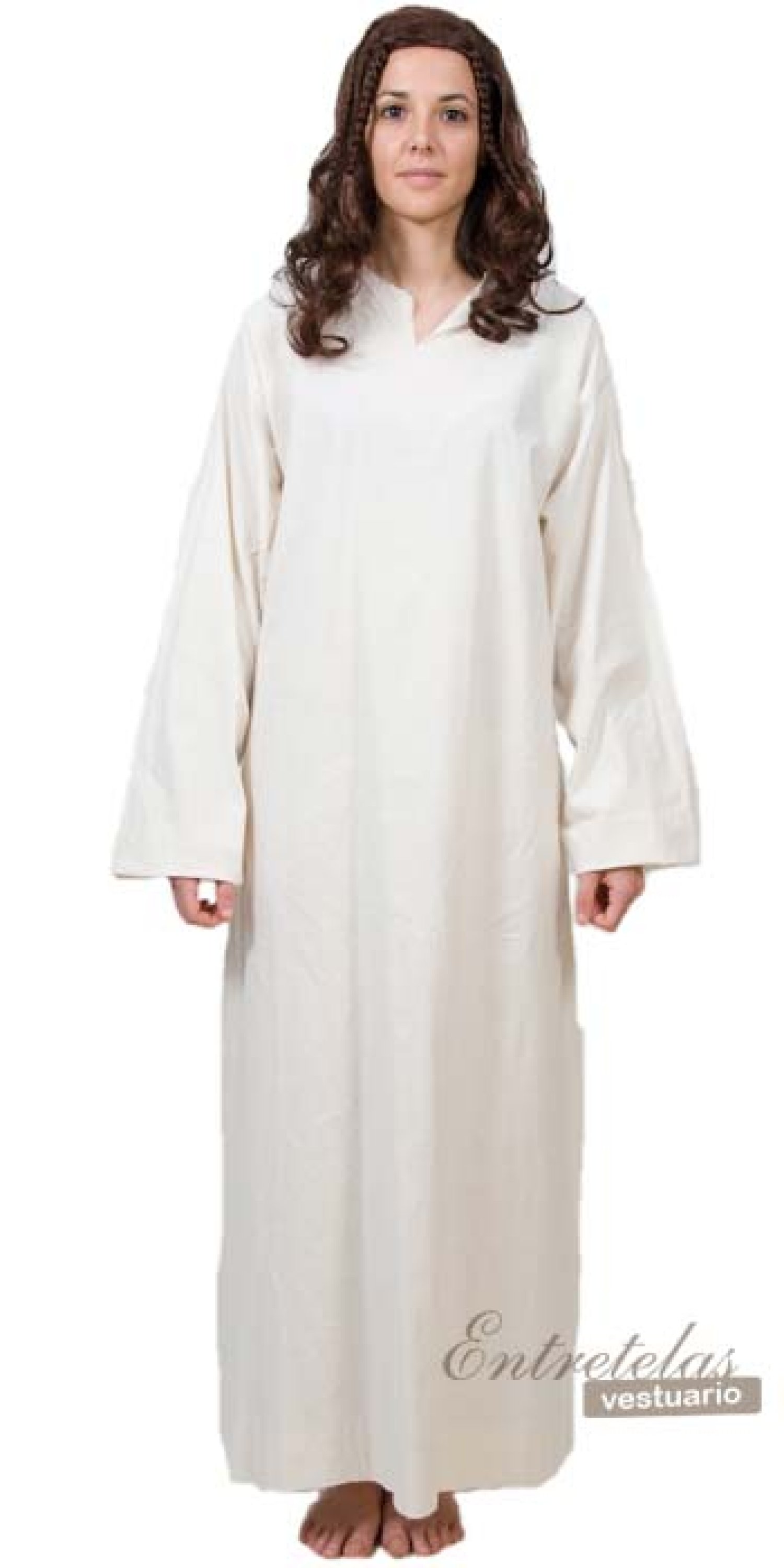Siglo V. Prenda interior unisex de manga larga recta. Escudete bajo el brazo de corte recto. Amplía el volúmen desde la axila hacia el bajo. Largo para las mujeres talar. Escote a la caja.