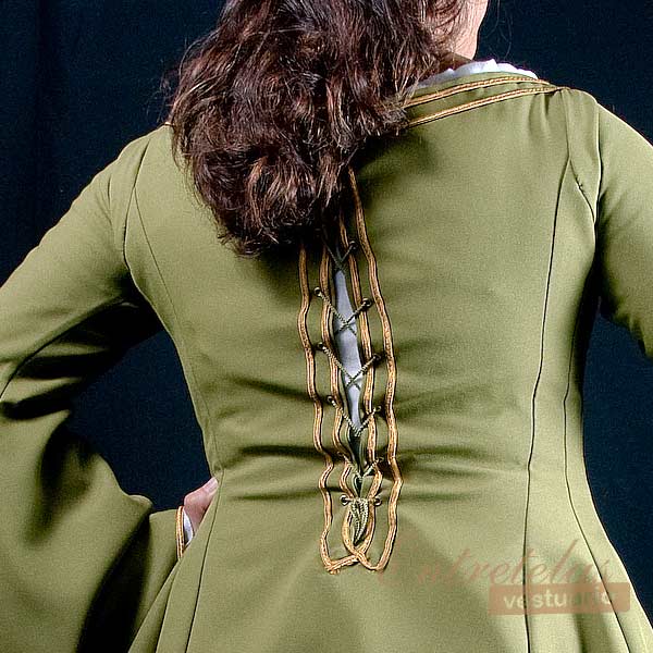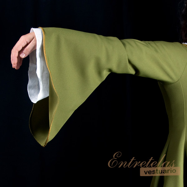 Prenda de vestir ajustada. Mangas de embudo que dejan ver la camisa. Desde mediados del siglo, se desnuda la garganta con escotes redondos. A finales del siglo, se ajustan exageradamente al cuerpo, al tiempo que se aumentan los vuelos en largas colas. Si se utiliza cinturón, se colocará a la cadera